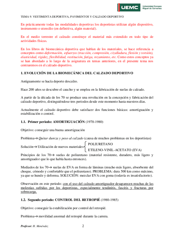 He publicado nuevos apuntes de 2º Biomecánica: T9-VESTIMENTA-DEPORTIVA-PAVIMENTOS-Y-CALZADO-DEPORTIV.pdf