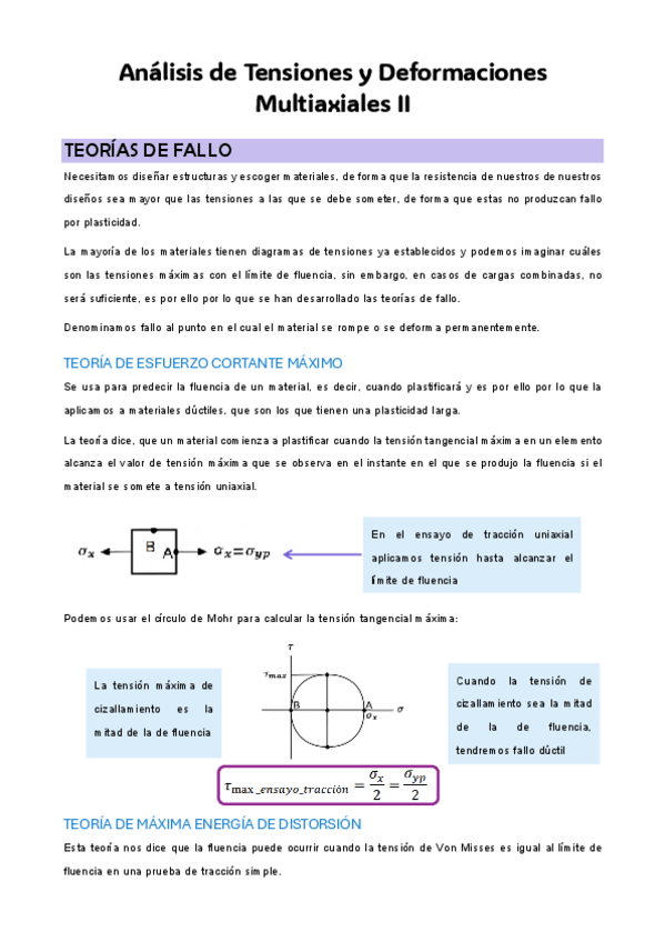 Teoría y problemas resueltos de clase del tema 18A Tensiones Multiaxiales