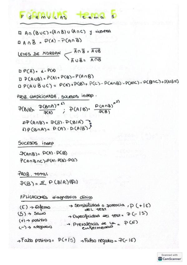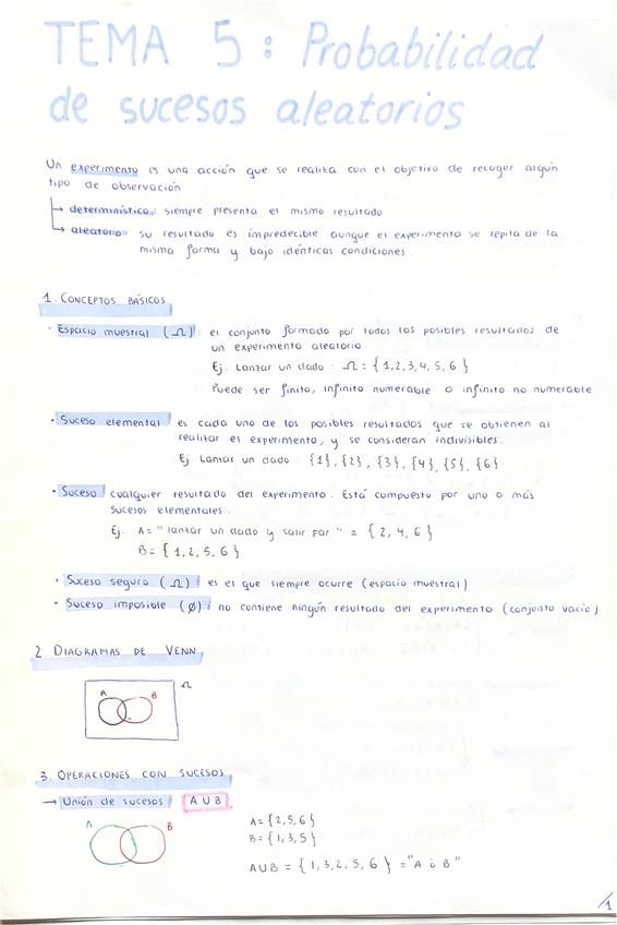 Tema 5: Probabilidad de sucesos aleatorios. Apuntes muy completos con ejemplos y ejercicios resueltos tipo examen