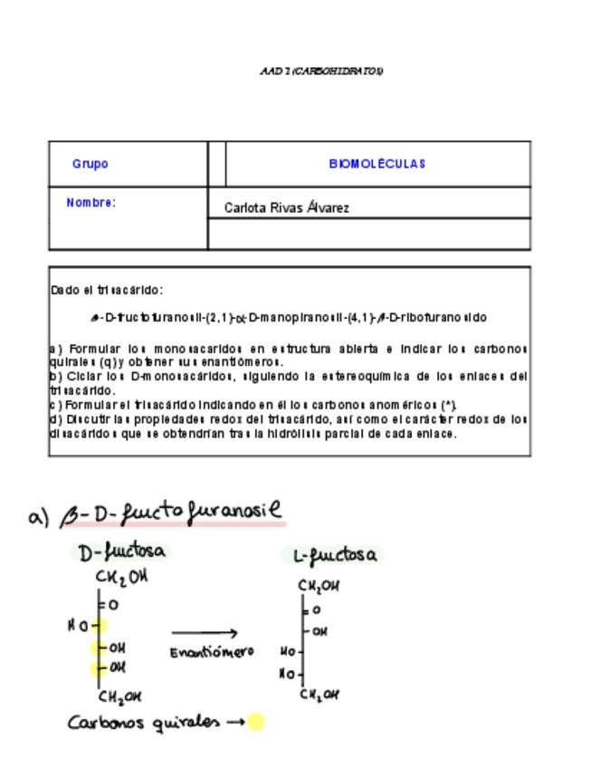 He publicado nuevos ejercicios de 2º Biomoléculas: AAD-1-Carbohidratos.pdf