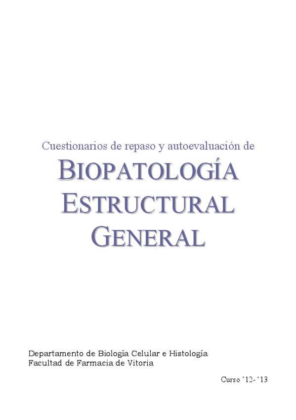 He publicado nuevos apuntes de 3º Biopatología Estructural General: CUESTIONARIOS-REPASO-Y-AUTOEVALUACIN-12-13.pdf
