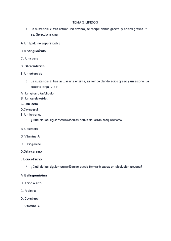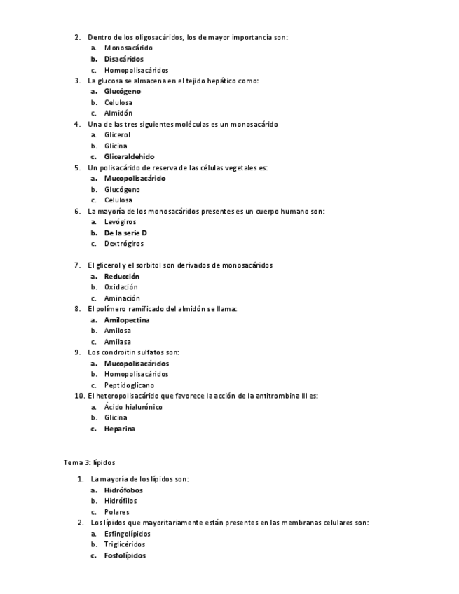 banco de preguntas de los temas 3 y 4 de bioquimica explicados una por una