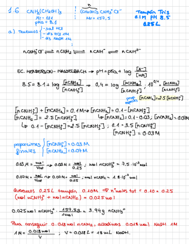 Ejercicio 1.3, 1.6, 1.8, problemas disoluciones tampón resueltos