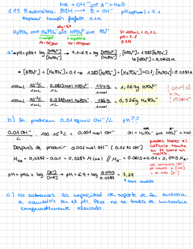 Ejercicio 1.1, 1.2, 1.4, 1.7, 1.9, 1.15, 1.16 problemas disoluciones tampón resueltos