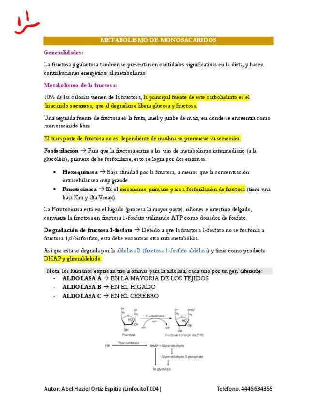 Es parte del documento general de carbohidratos, pero enfocado únicamente en el metabolismo de monosacáridos (galactosa y fructosa), así como en el metabolismo de la lactosa.