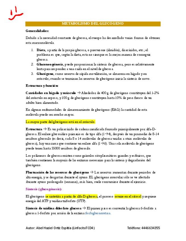 Es parte del documento general de carbohidratos, pero enfocado únicamente en la glucogénesis y glucogenólisis.