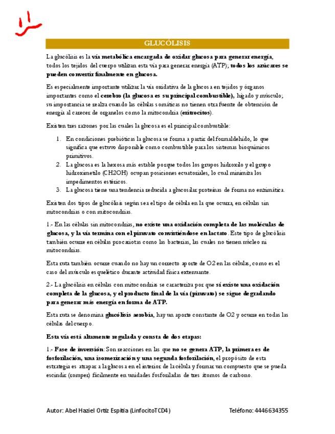 Es parte del documento general de carbohidratos, pero enfocado únicamente en la glucólisis.