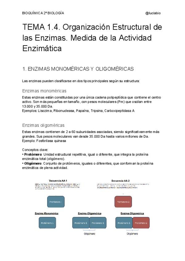 BLOQUE 2 BIOQUÍMICA (T7 - T9) - ENZIMOLOGÍA