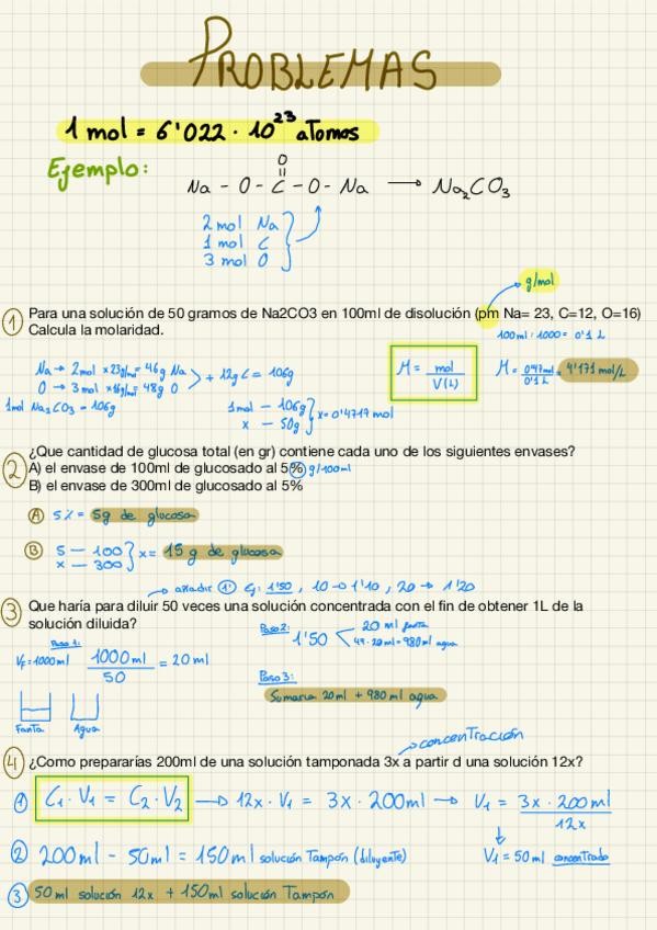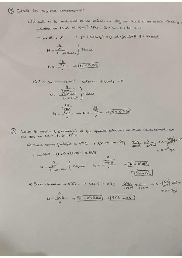Cálculos de Bioquímica corregidos, tanto de clase, como actividades de entrega, de las clases Magistrales… paso a paso