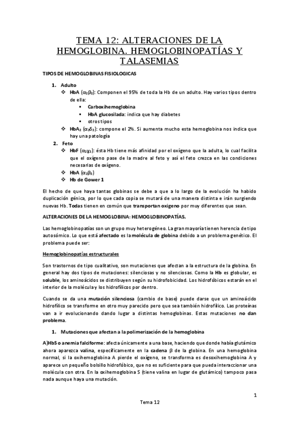 Tema 12. ALTERACIONES DE LA HEMOGLOBINA. HEMOGLOBINOPATÍAS Y TALASEMIAS.pdf