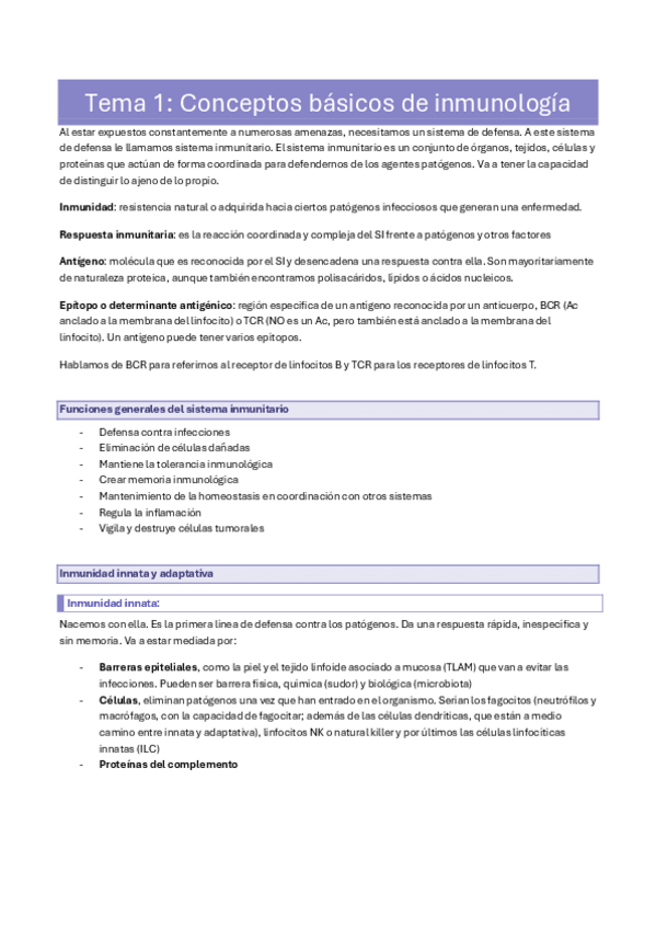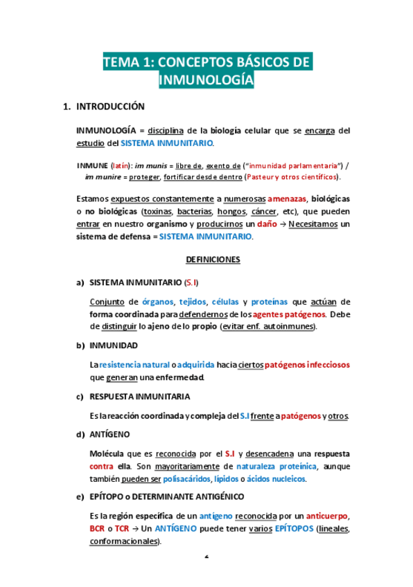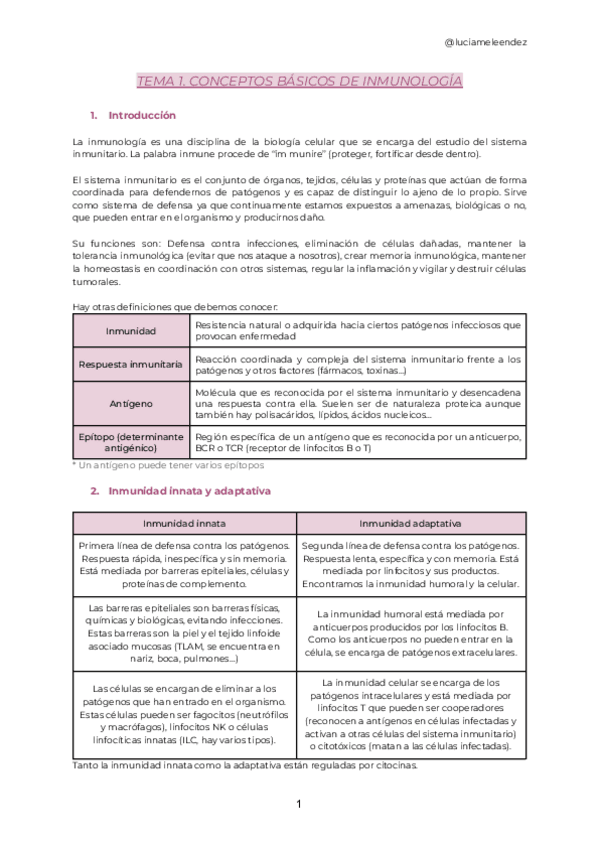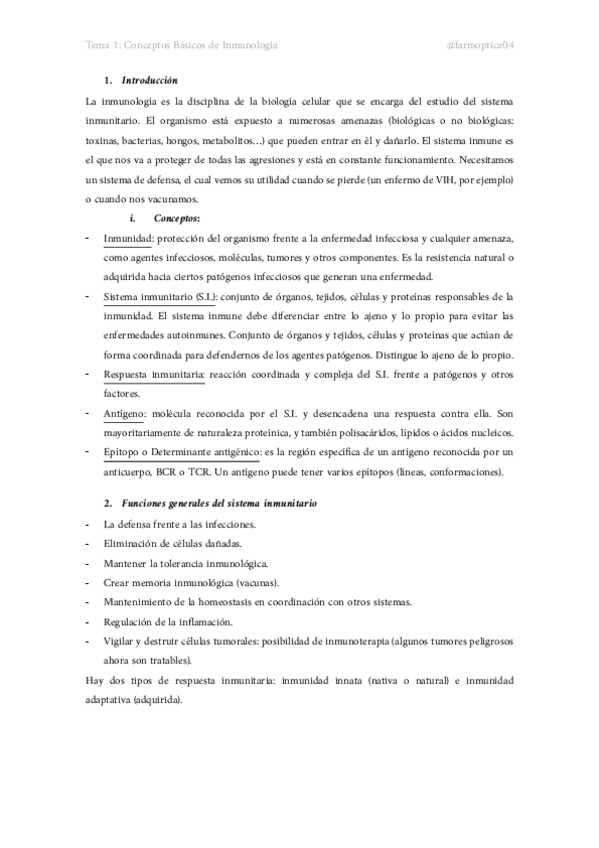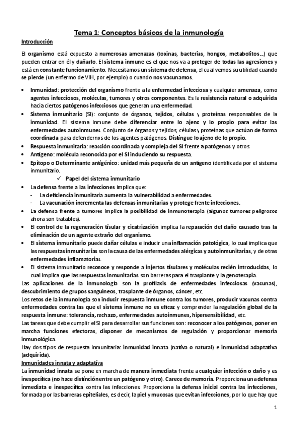 Apuntes Inmunología Teoría