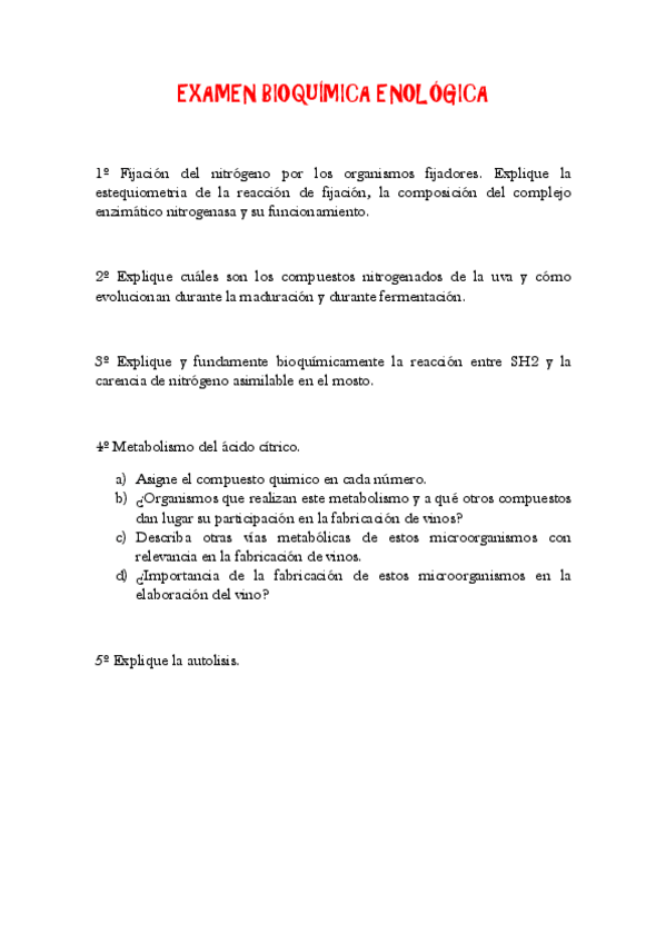 He publicado nuevos apuntes de 3º Bioquímica enológica: Preguntas bioquímica examen.pdf