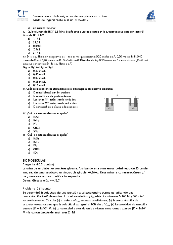 He publicado nuevos examenes de 1º Bioquímica Estructural: Examen-Final-Febrero-2017.pdf