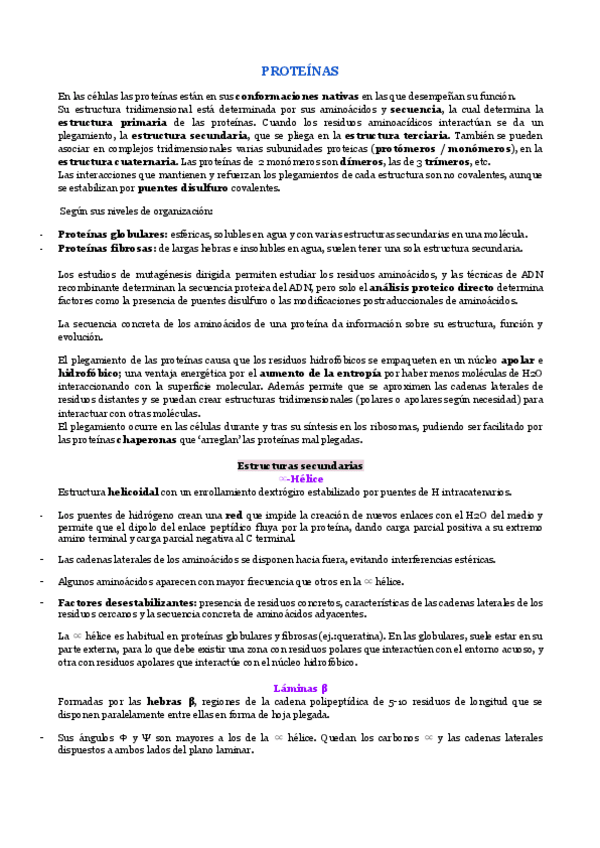 He publicado nuevos apuntes de 1º Bioquímica Estructural: resumen-proteinas-bq.pdf
