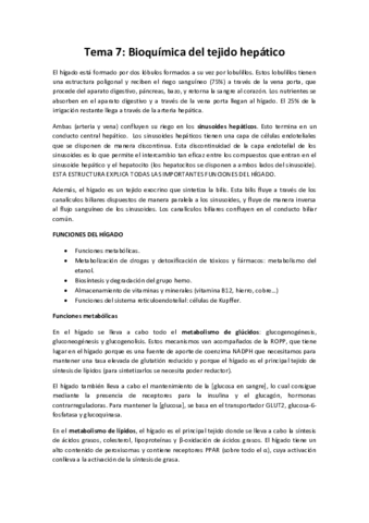 Apuntes completados a partir de Bibliografía. Nota: los temas 6 y 7 se encuentran invertidos con respecto al temario dado por considerar yo más lógico estudiar la detoxificación en general antes de la del etanol en particular.