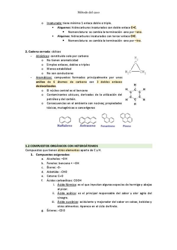 Apuntes del método del caso 1: compuestos del carbono