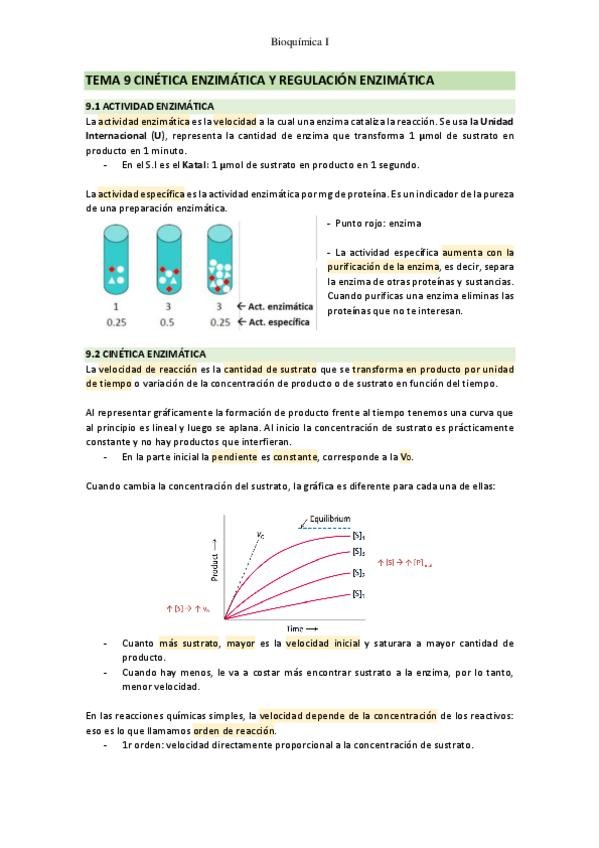 Apuntes de la primera parte del tema 9: cinética enzimática y regulación enzimática