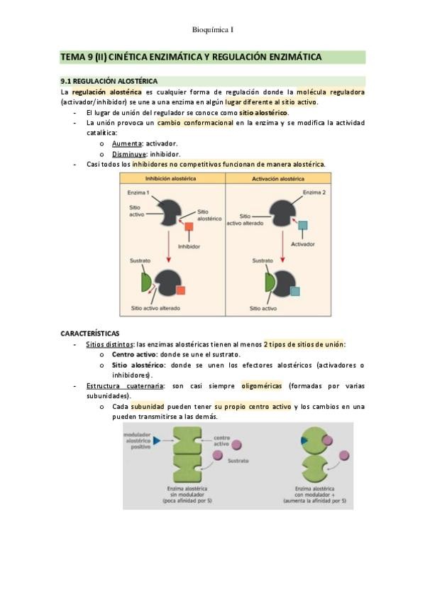 Parte 2 del tema 9: cinética enzimática y regulación enzimática
