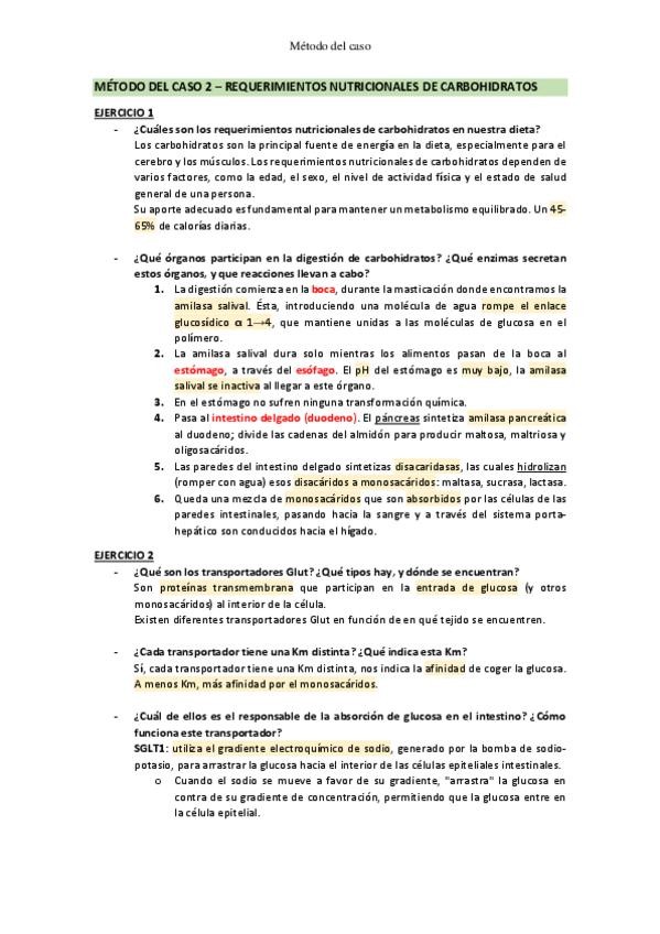 Apuntes del método del caso 2: requerimientos nutricionales de los carbohidratos.