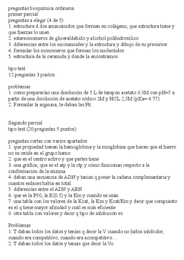 He publicado nuevos examenes de 2º Bioquímica I: Estructura y función de biomoléculas: PREGUNTAS-EXAMEN-ORDINARIA-BQ.pdf