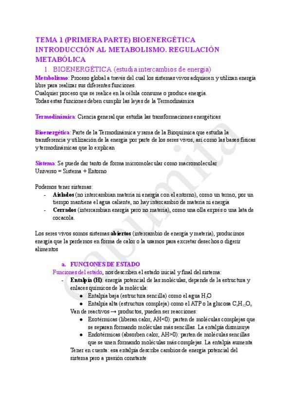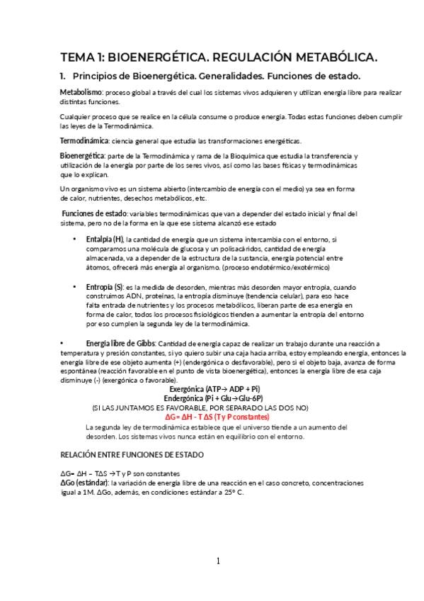 Apuntes del Tema 1 (Bioenergética & Panorama general del metabolismo).