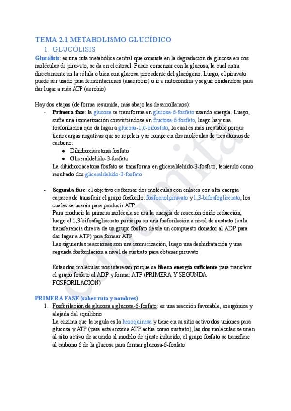 Apuntes Tema 2: Metabolismo Glucídico.