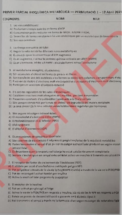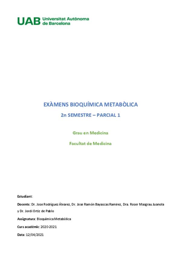 He publicado nuevos examenes de 1º Bioquímica Metabólica: 1r-parcial-2020-2021.pdf