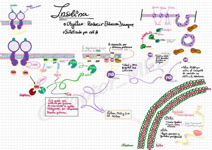Esquemas de la señalización de la insulina y el glucagón, sirve de resumen del 1r tema.