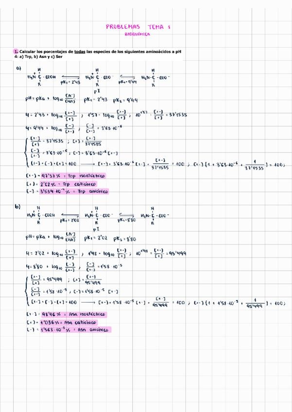 Ejercicios de bioquímica resueltos y contrastados en clase