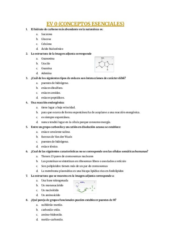 Preguntas importantes para el examen de prácticas del primer cuatrimestre de bioquímica