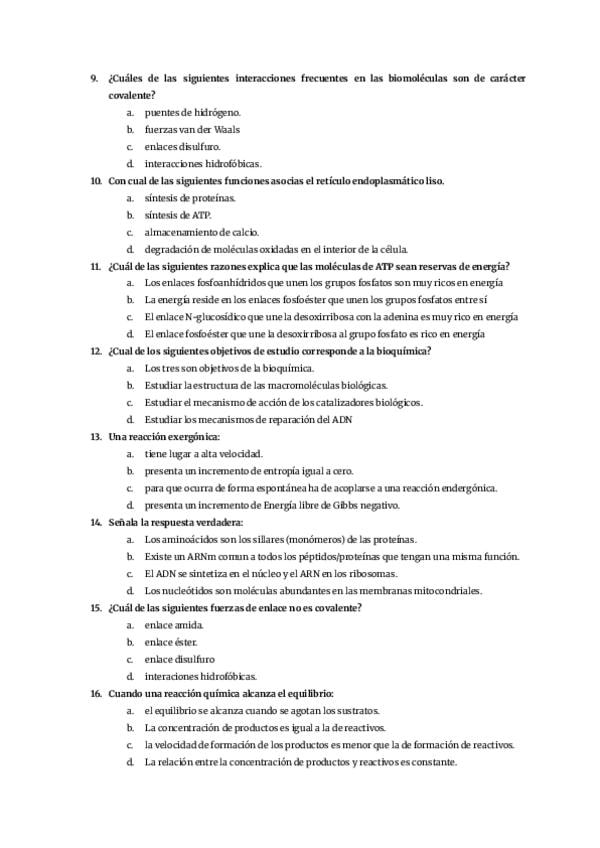 He publicado nuevos examenes de 1º Bioquímica y Biología Molecular I: Preguntas-tipo-examen.pdf