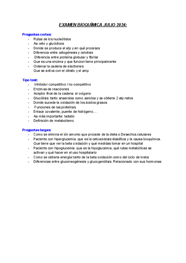 Preguntas de los exámenes de bioquímicas de los últimos años resueltas, siempre algunas se repiten