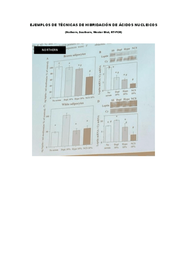 Ejemplos de southern, norther, wester blot y RT-PCR