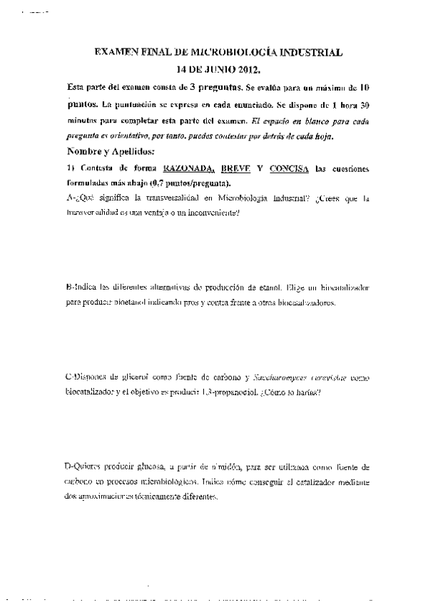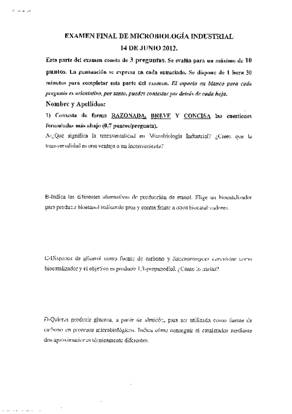 He publicado nuevos examenes de 3º Bioquímica y Microbiología Industrial: Examen.pdf