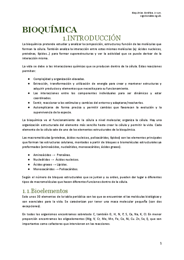 BIOQUÍMICA PARCIAL 1 CASTELLANO