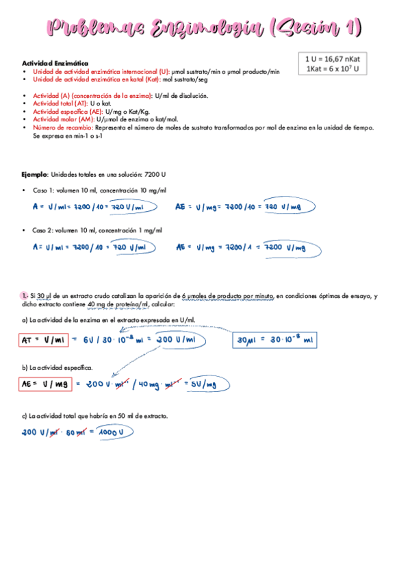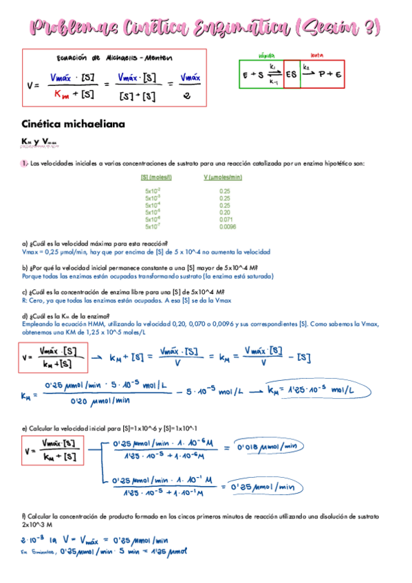 Problemas Enzimología + Cinética enzimática