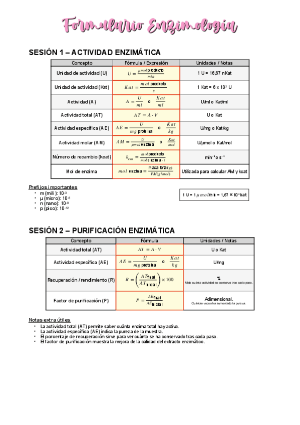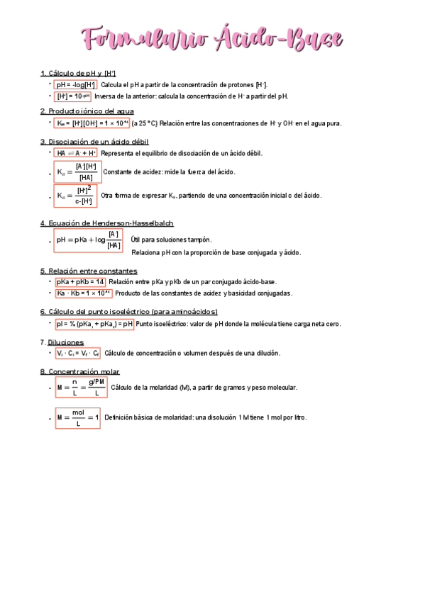 Formularios Ácido-Base + Enzimología