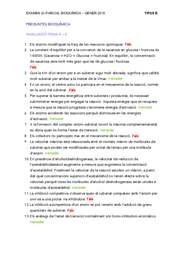 2n parcial bioquímica con comentarios explicativos acerca de las preguntas tipo verdadero o falso. Espero que os sirva!!