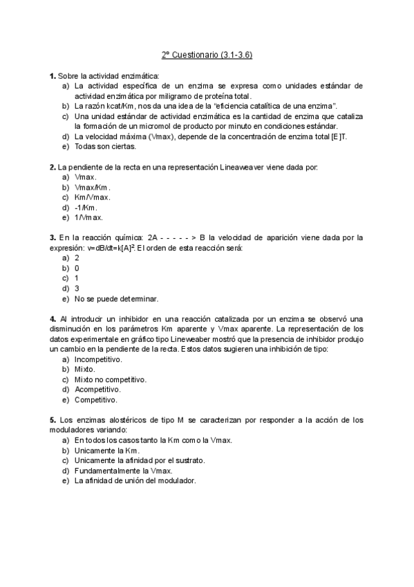 He publicado nuevos examenes de 1º Bioquímica: 2º Cuestionario (3.1-3.6).pdf