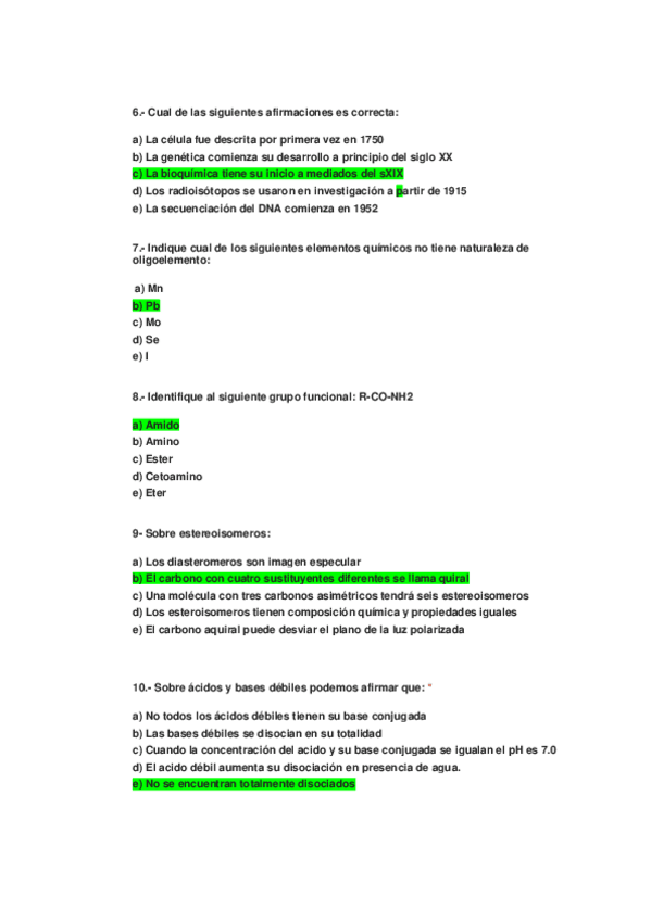 Preguntas bioquímica examen