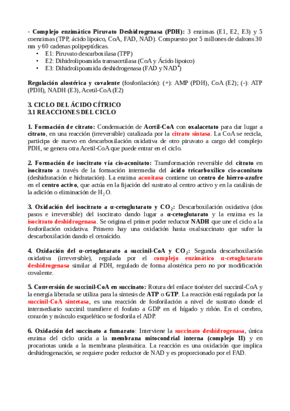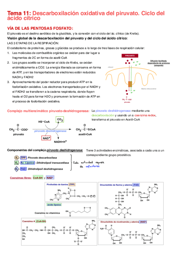 Resumen Tema 10: TEMA 10: PROCESOS OXIDATIVOS: CICLO DEL ÁCIDO CÍTRICO Y RUTA DE LAS PENTOSAS FOSFATO