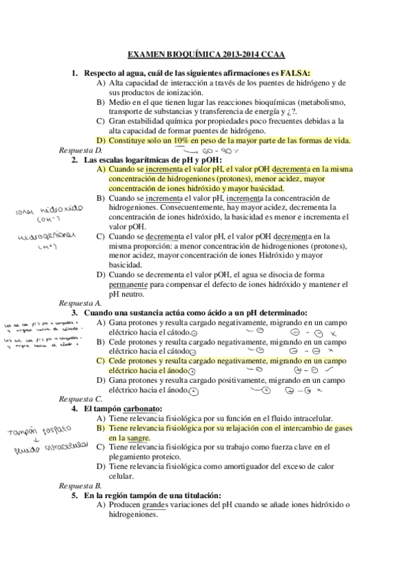 Examen Bioquímica (estudiar esto MUY bien) suele repetir preguntas tanto en Enero como en Junio