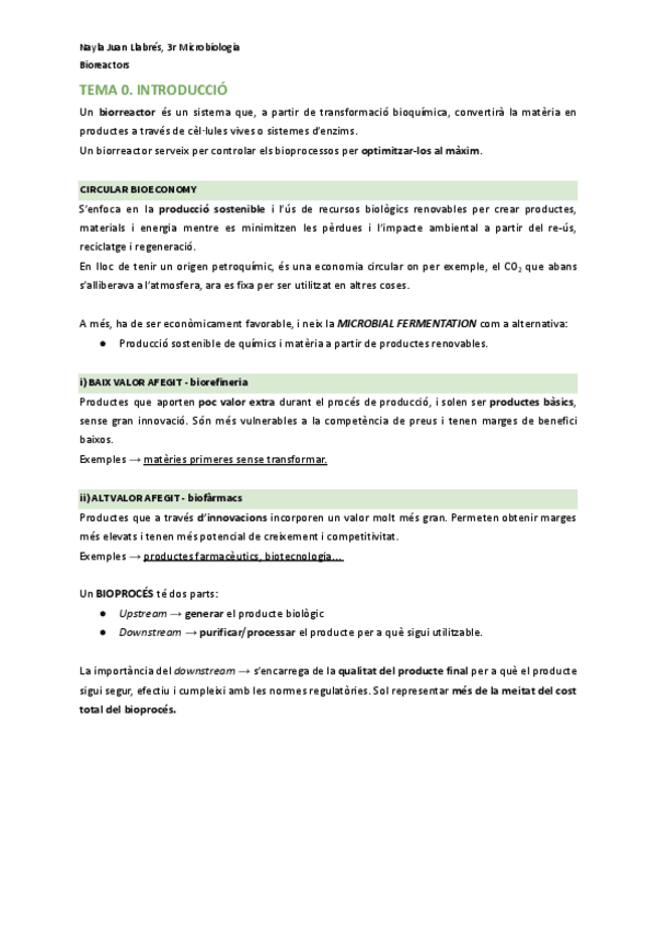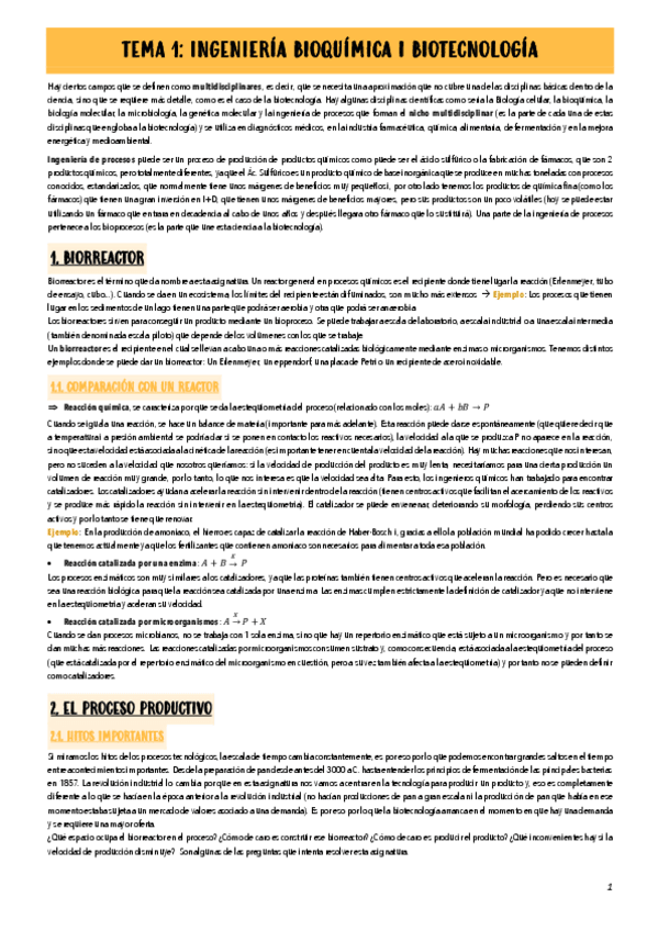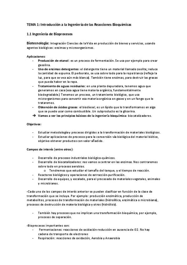 Apuntes de toda la asignatura de Biorreactores (36 páginas). Creo que están muy claros y, por supuesto, están revisados.