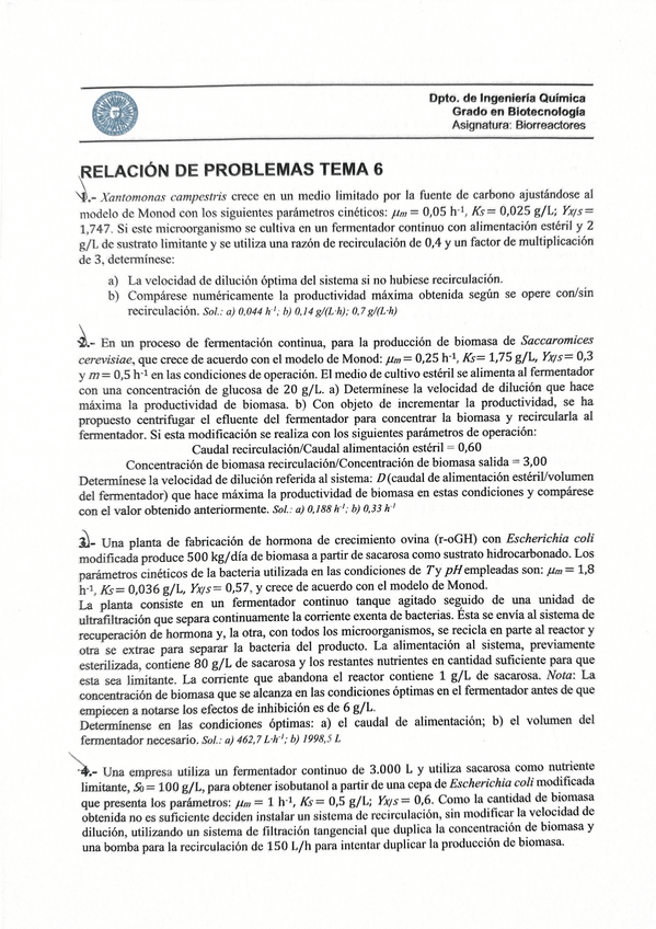 He publicado nuevos ejercicios de 2º Biorreactores: Problemas-biorreactores.pdf