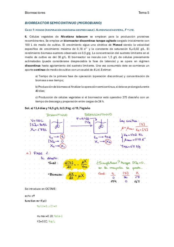 He publicado nuevos apuntes de 4º Biorreactores: ✦OCTAVE TEMA 5 PROBLEMAS CLASE✦