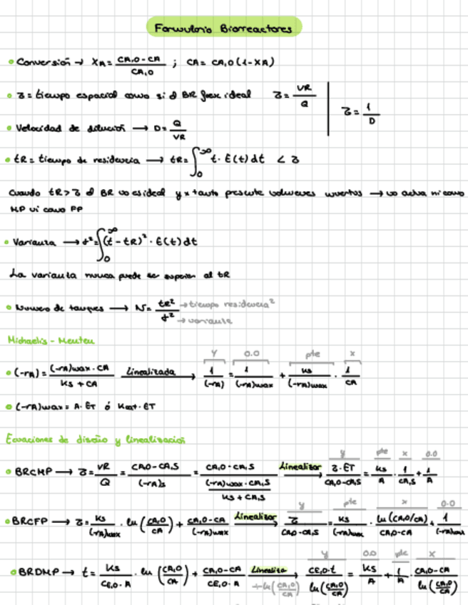 Apuntes Biorreactores y Ejercicios de clase.