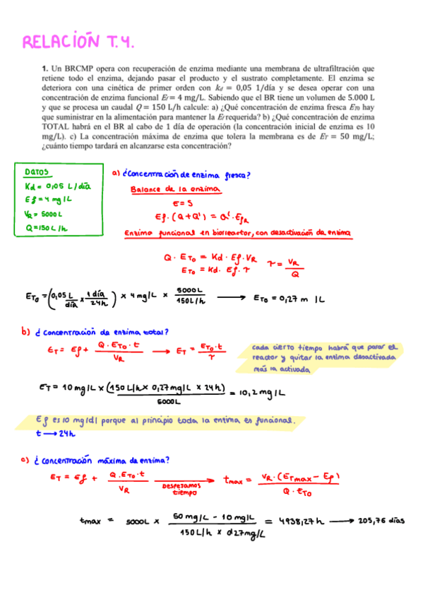 He publicado nuevos ejercicios de 2º Biorreactores: Relaciones problemas