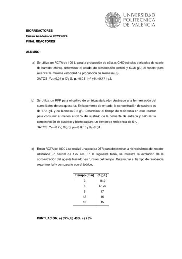 He publicado nuevos examenes de 3º Biorreactores: 2o-parcial-reactores-2324.pdf