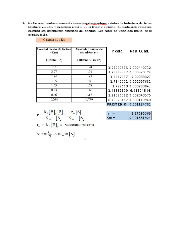 He publicado nuevos apuntes de 3º Biorreactores: Ejercicios explicados. Cinética enzimática.xlsx