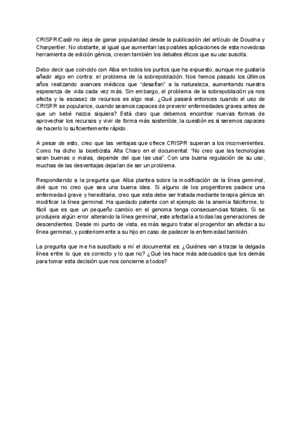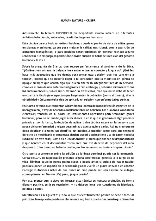 He publicado nuevos ejercicios de 2º Biosíntesis de Macromoléculas: Debate-Human-Nature-CRISPR.pdf